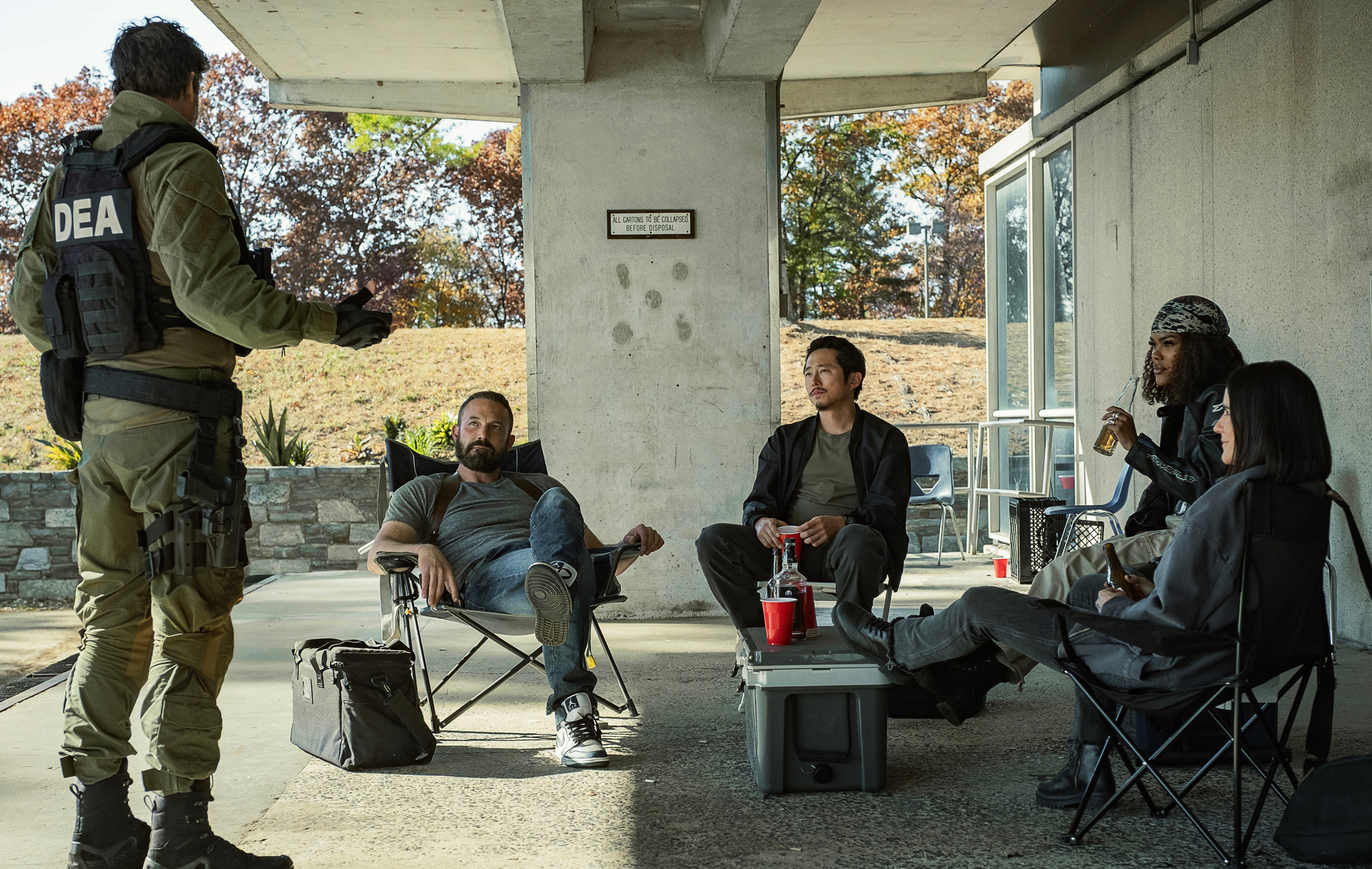 The comedic beats—carefully woven into dialogue and downtime—don’t undercut the danger. They humanize it. There is humor in absurd moments and cracked jokes where tears should exist—showing the team hanging on to small moments of joy like a fragile lifeline. Some of the film’s most memorable moments come from these pauses, especially scenes involving Affleck and Scott Adkins—who plays FBI Agent Del Byrne—where humor becomes both shield and weapon.
