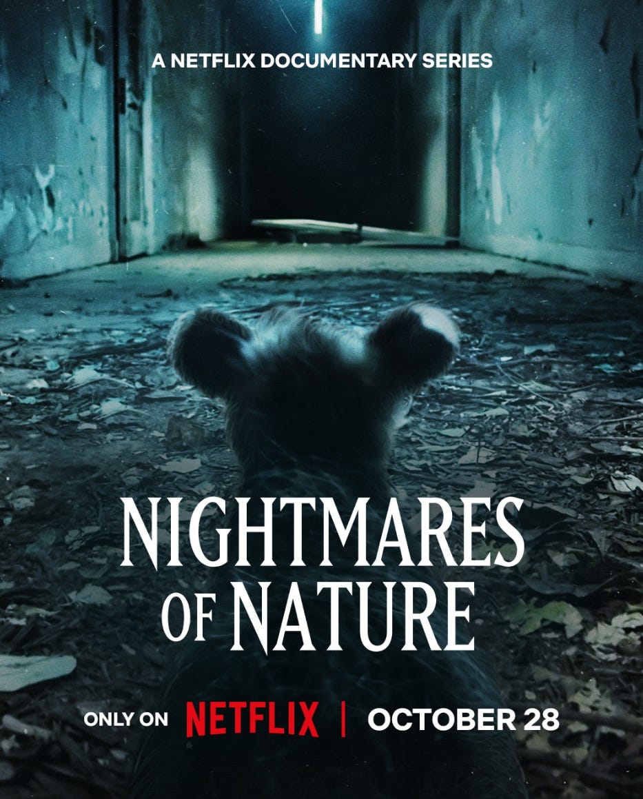 What makes this series unique is that it centers the question “what if Planet Earth itself was a horror movie?” How Nightmares of Nature answers this question is by offering a grisly component to the brutality of nature, forcing the audience to take a deeper look at the lives of the animals they cohabitate this Earth with—creating room in the human heart to express empathy toward all creatures (and perhaps treat Planet Earth better).