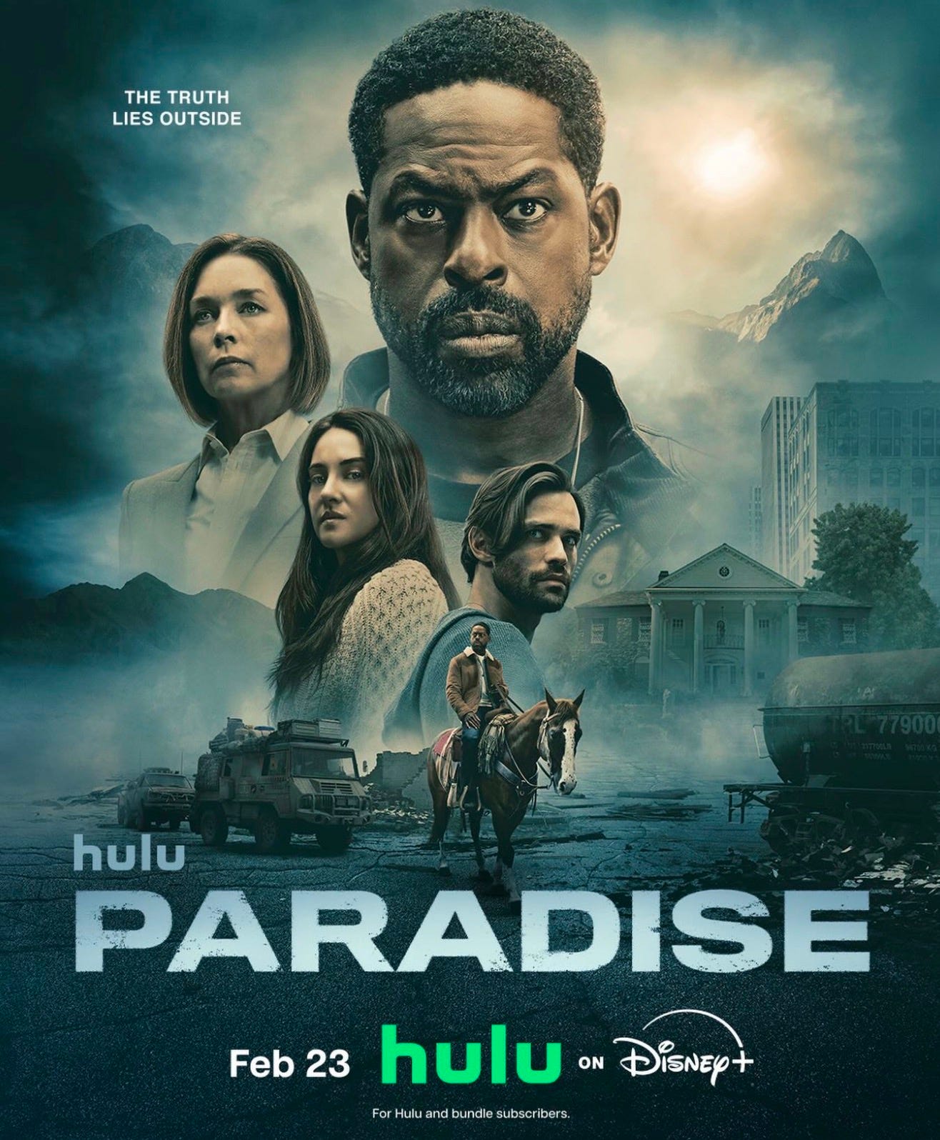 Paradise—created and executive produced by Dan Fogelman—stars Sterling K. Brown, Julianne Nicholson, Sarah Shahi, Nicole Brydon Bloom, Krys Marshall, Enuka Okuma, Aliyah Mastin, Percy Daggs IV, and Charlie Evans. Recurring guest stars include Shailene Woodley and Thomas Doherty.