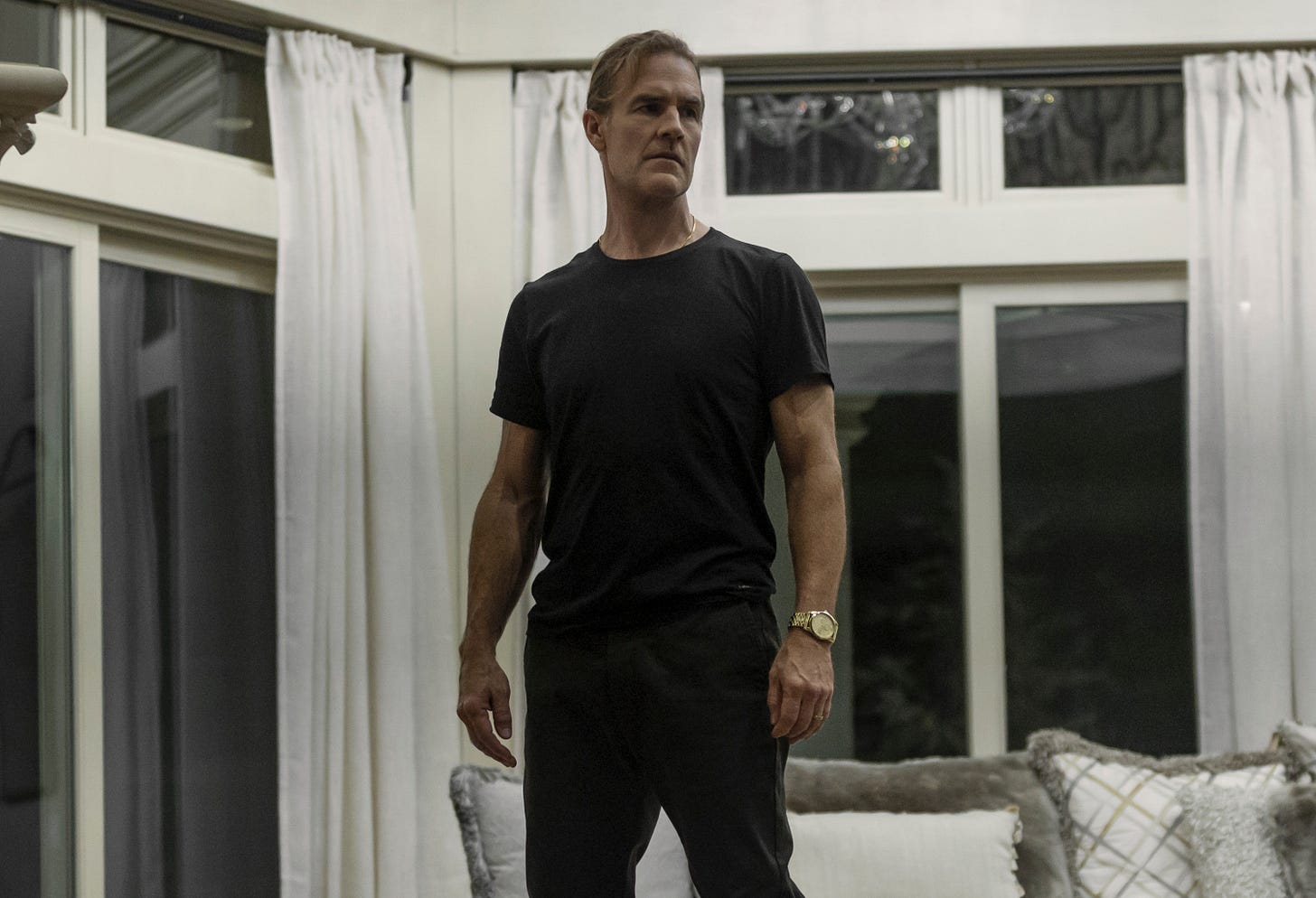 “Behind the gates, I’m a god.” The late James Van Der Beek makes one of his final appearances as the antagonist of the film—a community leader within the stone walls who holds all the power and influence over every man, woman, and child. As seen in the trailer, one detour, one wrong turn, and a seemingly charming neighborhood quickly dissolves into a night of frantic survival.