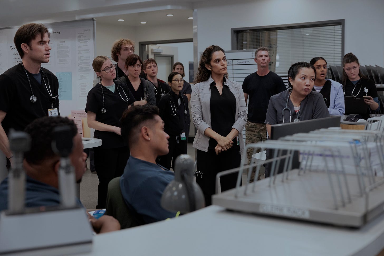 As mentioned in previous coverage, Dr. Javadi’s line about task delineation captures the mindset of the new doctors at The Pitt: someone (or something) else is supposed to do that. That line alone signals a tech dependency that many healthcare workers have when it comes to the advancement, and added convenience, of healthcare.
