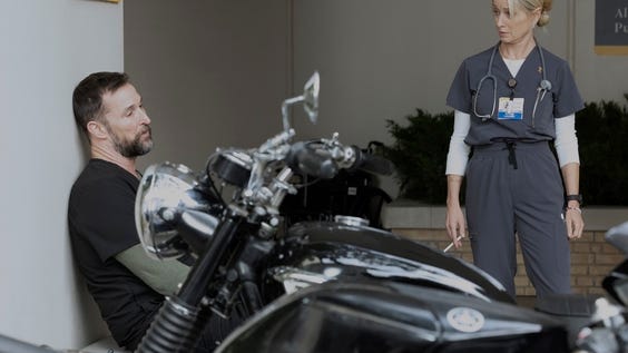 The best part of the episode is the blow up (that needed to happen) between Dana and Robby. During this emotionally hijacked confrontation we find the core of his mood is his issue with Langdon being back at work and feeling responsible for it—a personal issue that he reprimanded, and continues to take shots at, Mohan about bringing to work. A personal issue that impairs his treatment of his staff, and issue that he masks as leadership but Dana sees through the façade.